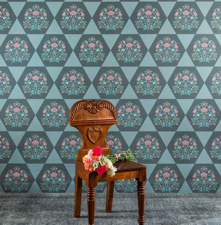 Phool Jali Indigo brings together floral beauty and geometric discipline. The rich indigo base holds a symmetrical dance of vines and blossoms, inspired by Mughal garden art and Sunder Nursery’s timeless stonework. Perfect for serene yet striking interiors.