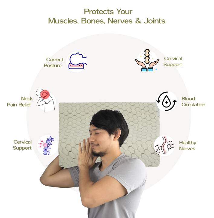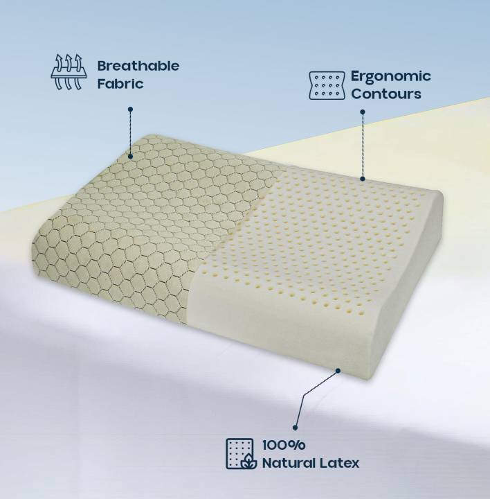 100% natural latex core with pure cotton coverNeck pain relief, posture correction