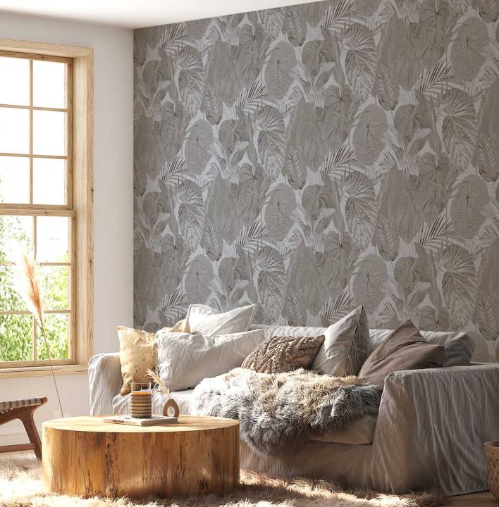 Delicate shades of misty gray and soft sage breathe a quiet elegance into this botanical wallpaper. The intricate detailing of layered leaves creates a subtle yet sophisticated texture, bringing an organic flow to your space. Designed to complement modern interiors, this wallpaper harmonizes beautifully with cool-toned walls, white furnishings, and minimalist decor. Perfect for creating a serene retreat in living spaces, bedrooms, or offices, it adds a refined, nature-inspired touch to any setting.