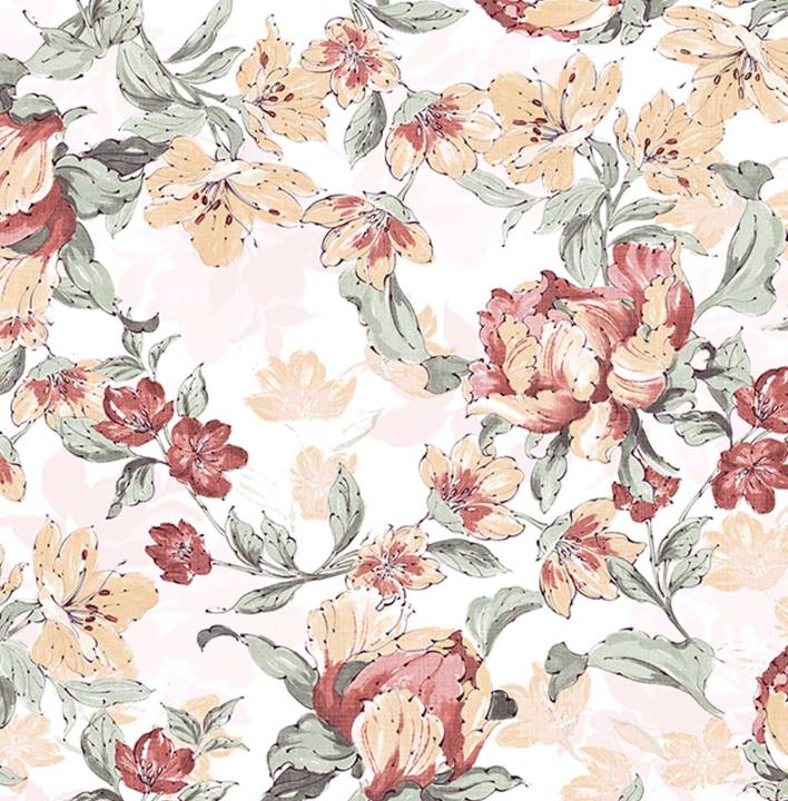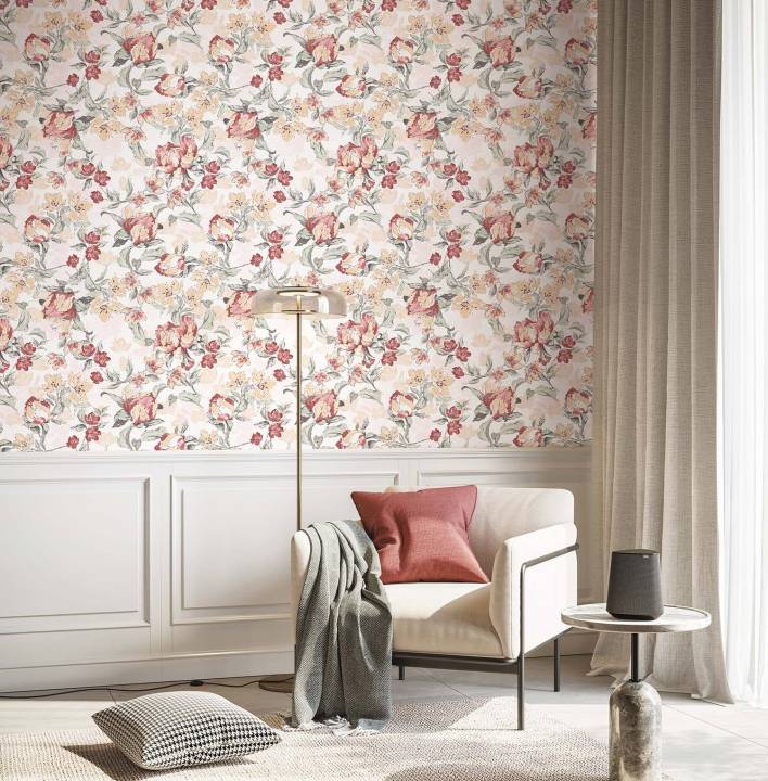 This wallpaper features a vibrant floral pattern with large, hand-painted style blooms, creating a fresh and lively ambiance. The intricate floral design adds a touch of elegance and romance to any space, making it perfect for bedrooms, living rooms, or dining areas. The rich detailing and layered pattern offer depth and texture, transforming your walls into a stunning focal point while bringing a bit of nature indoors.