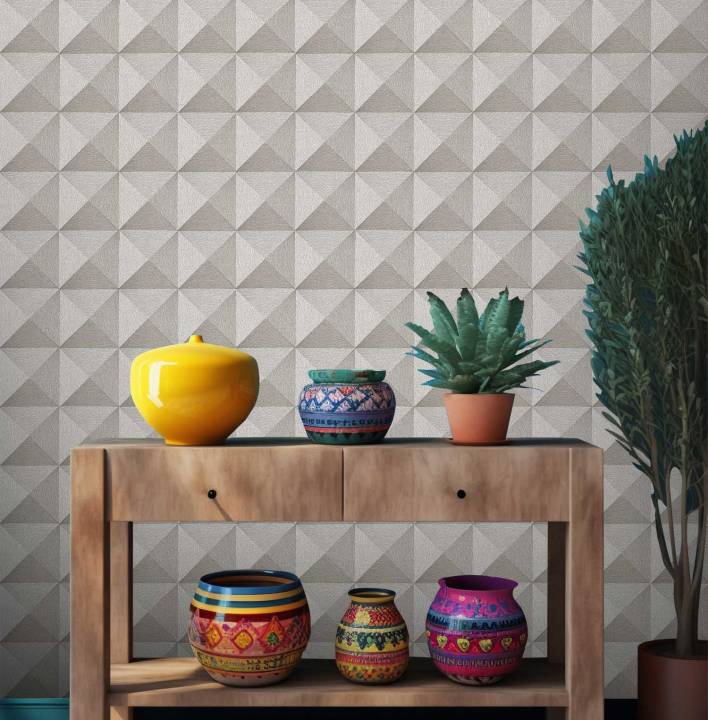 3D geometric patterns are a trendy, modern wallpaper choice that brings depth and texture to your interiors. These designs make a bold statement with sharp, repeating lines for a contemporary feel or soft, curved motifs for a more classic look. Perfect for creating striking feature walls, 3D geometric patterns add a sense of movement and dimension, blending style and sophistication effortlessly.