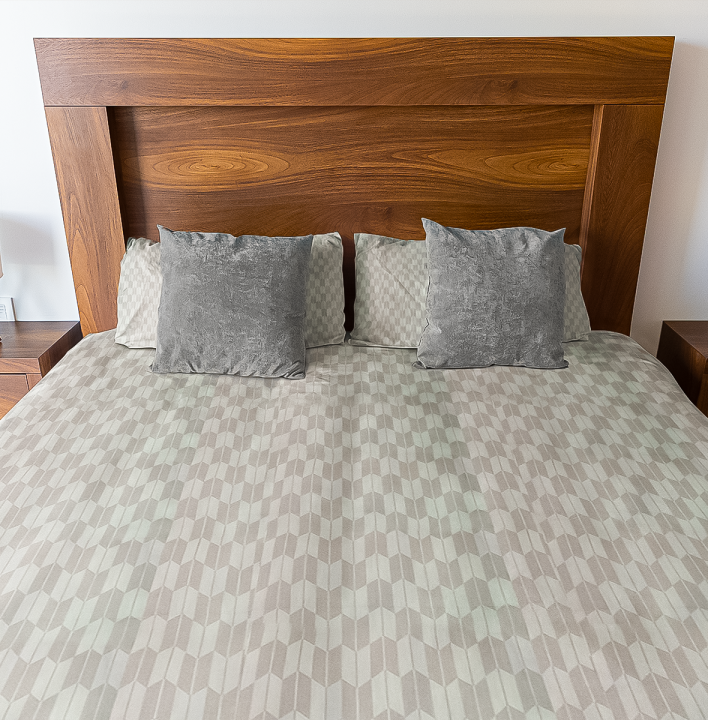 The Beige Prism Cotton Bedsheet is made from high-quality 300 thread count cotton, ensuring a luxuriously soft and breathable feel. The understated geometric pattern in warm beige and ivory tones creates a sophisticated yet minimal look, perfect for modern and elegant bedrooms. Pairs beautifully with wooden furniture and neutral décor for a refined aesthetic.