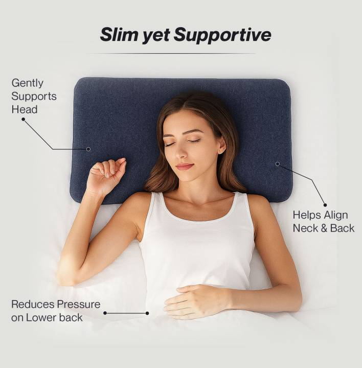 Enjoy deep support in a sleek design with our SlimSupport Memory Foam Pillow. Just 2–3 inches thick, this slim pillow is made with high-density memory foam that gently cradles your head and neck without bulk. The outer layer features a luxuriously soft, quilted fabric that adds a cozy touch to your nightly rest. Ideal for those who prefer a low-profile pillow with firm comfort, it fits perfectly for both back and side sleepers. Compact in look, powerful in support — this is minimal comfort, maximized.