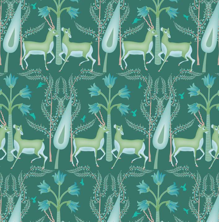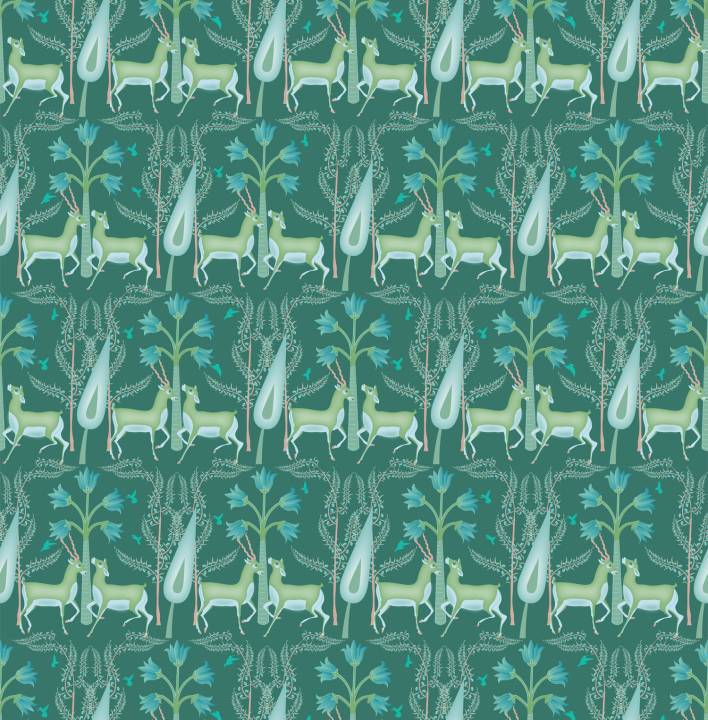 Romantic Forest with Deer & Birds
