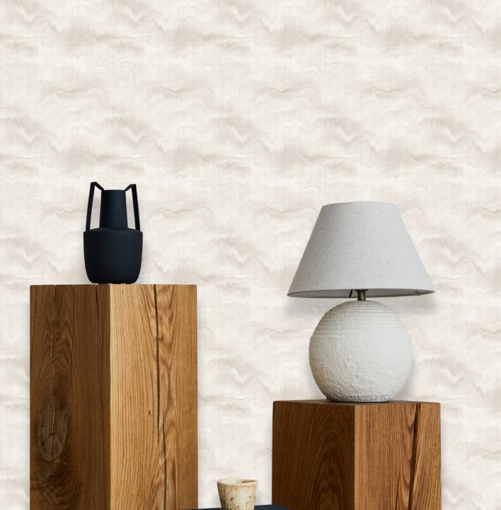 This wallpaper carries a calm taupe color base with a fog-like cloudy overlay across a neat textured grid. It’s perfect for those who love earthy shades but want a bit of softness on their walls—suited for offices, nooks, or calm-themed homes.