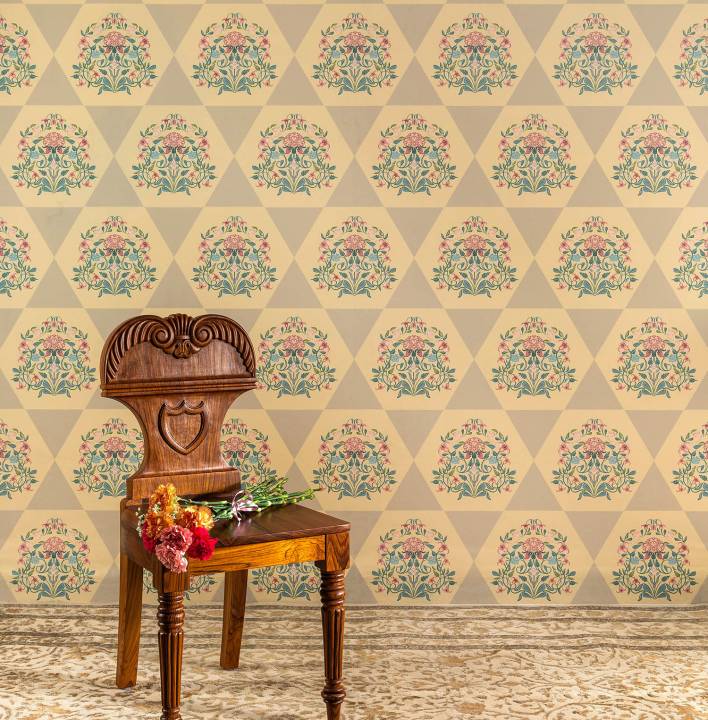 Phool Jali Sand brings the richness of Mughal-inspired floral jalis into a softer, sand-toned palette. Framed in gentle geometric shapes, the blossoming vines and intricate curves feel both artistic and calming. Perfect for living rooms, foyers or quiet corners where warmth and history meet.