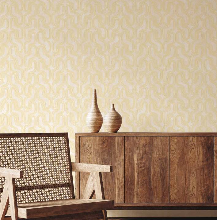 With its soft golden-yellow lines flowing across a light beige base, this wallpaper brings cheerful energy to any space. The wave design adds movement and modern character, making it perfect for brightening up bedrooms, entryways, or creative corners. Light, lively, and full of charm.